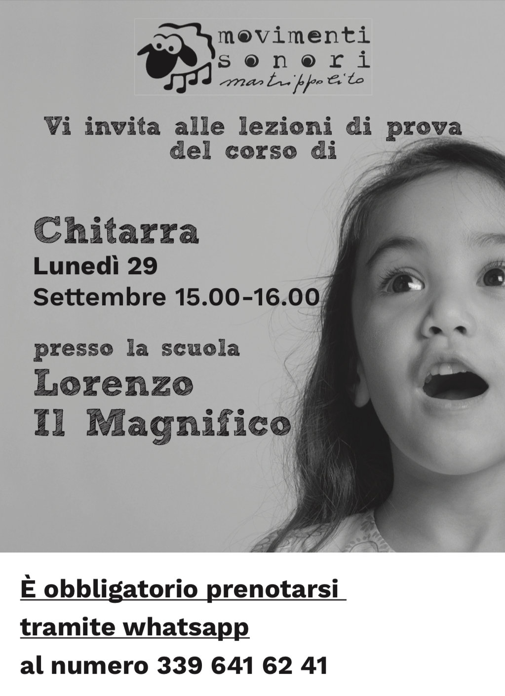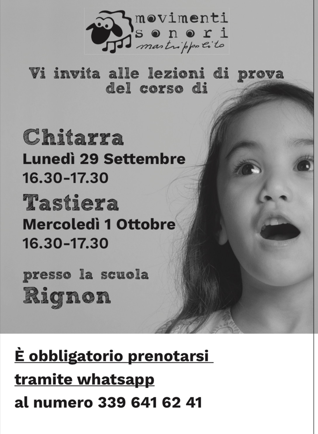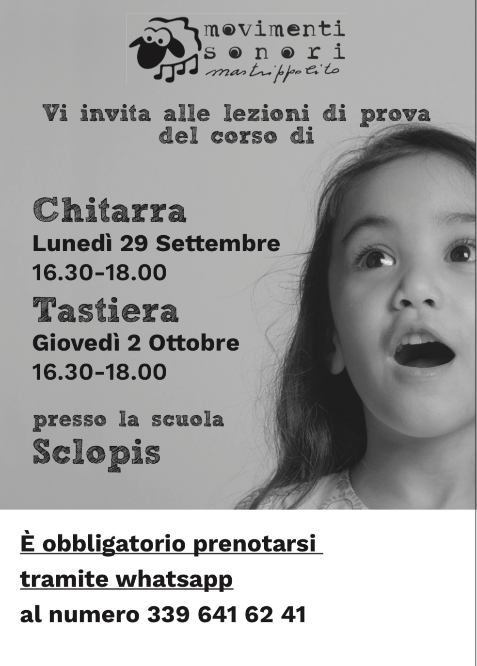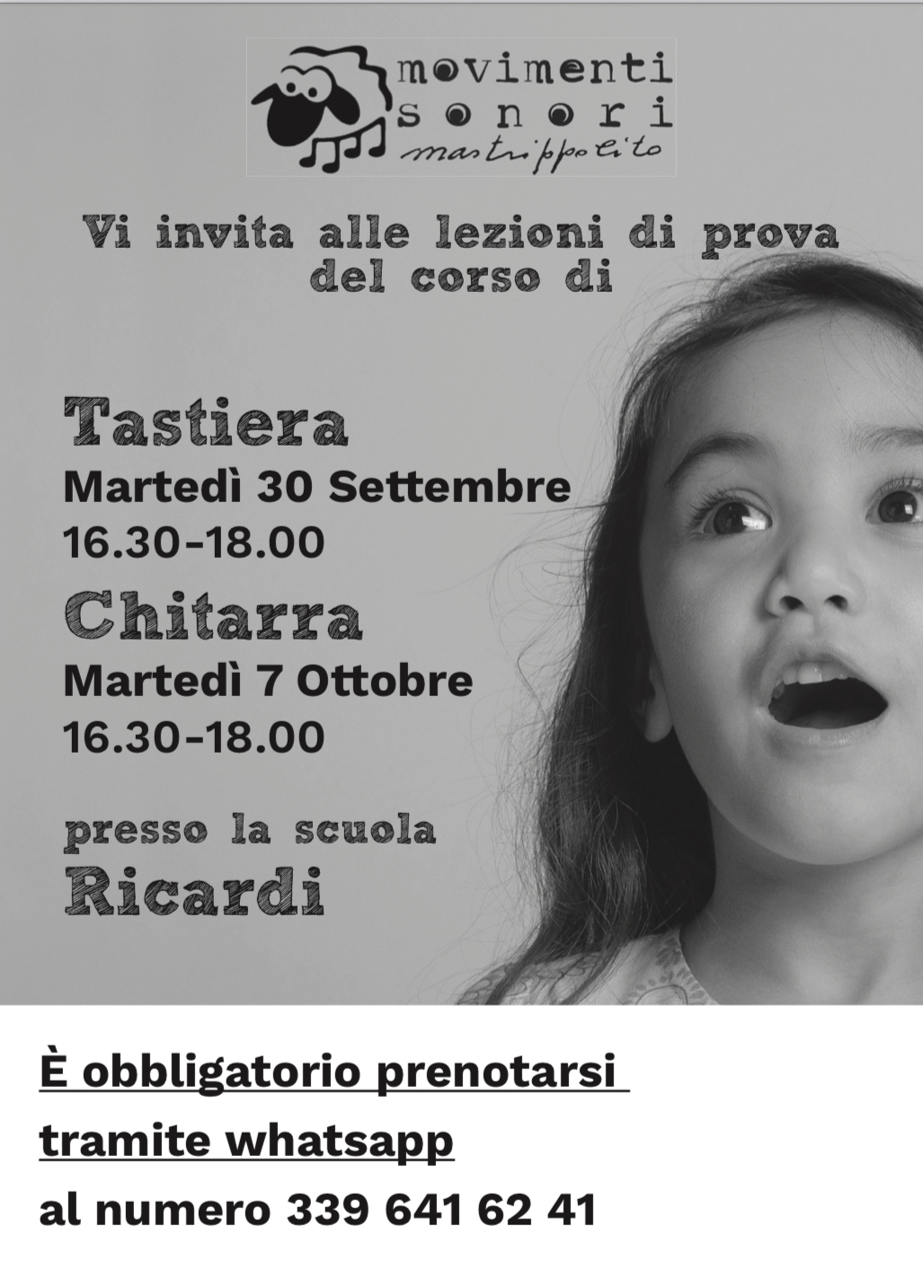 L'Associazione Movimenti Sonori vi invita alla lezione di prova del corso di TASTIERA: Martedì 14 Ottobre dalle 14.30 alle 15.30